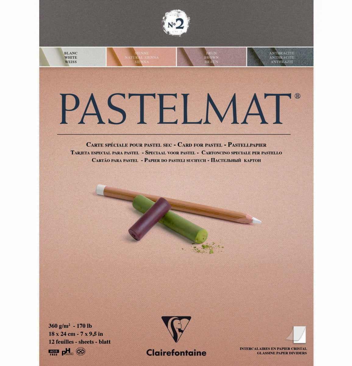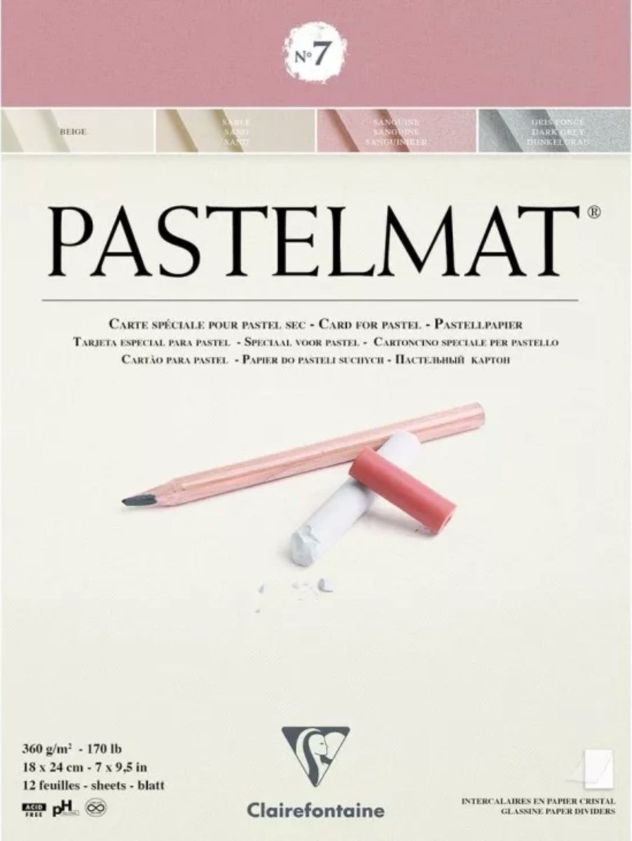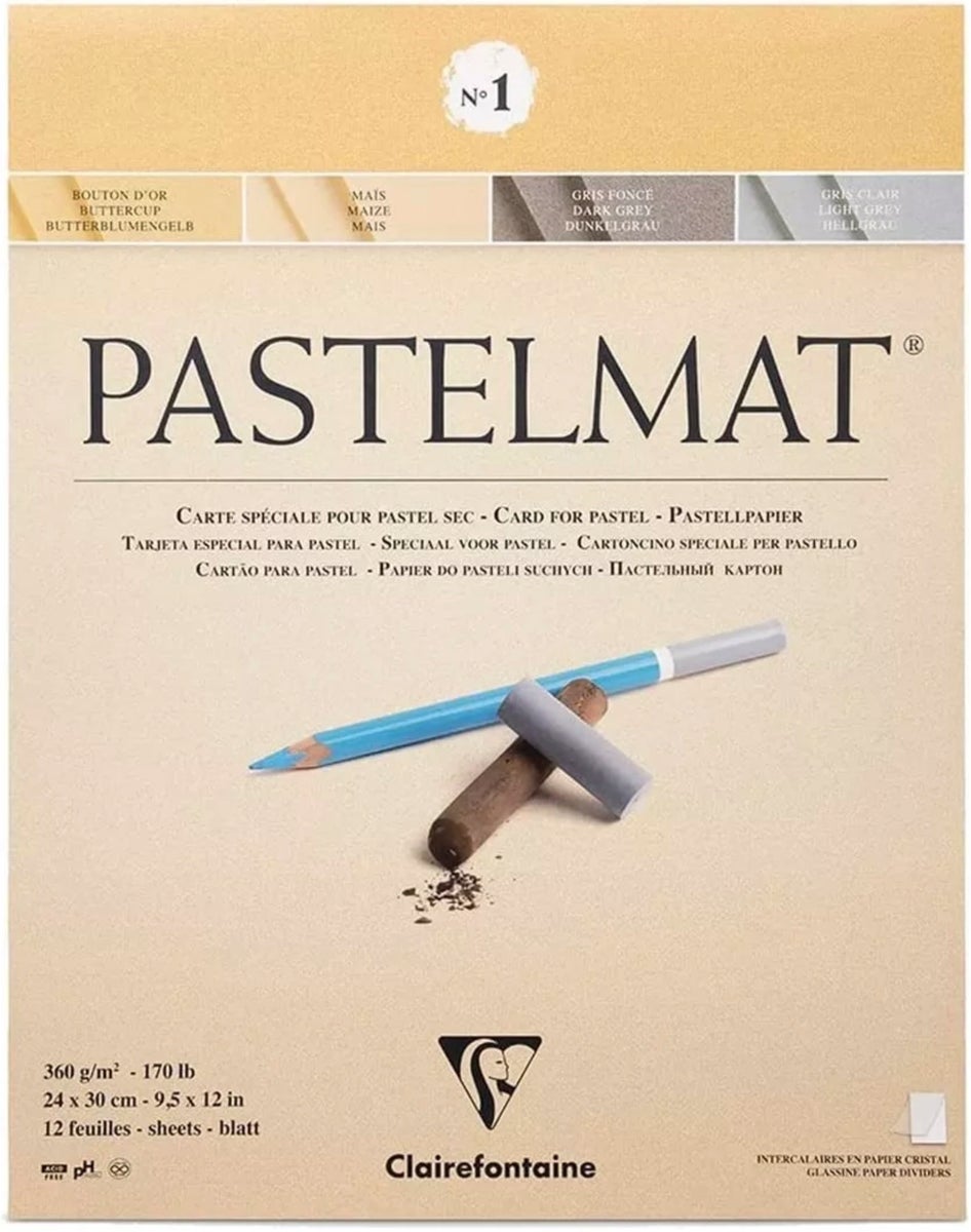 A Unique surface on which you can build up layers without the use of fixatives. Coarser than velour yet softer than sand grained paper. Protective crystal papers between each sheet.