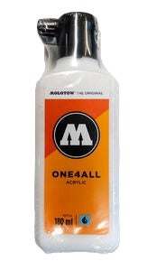 Molotow One4All is a technically advanced and unique acrylic-based hybrid paint that works on nearly every surface. This large 180ml white refill bottle is an excellent and economical choice for artists who use a lot of white paint for priming or mixing pastel shades. It's the perfect solution for refilling your One4All markers and offers endless creative possibilities. The highly pigmented paint is made in Germany, guaranteeing outstanding coverage and a brilliant white color.
